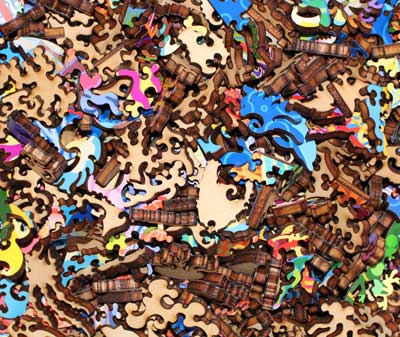 So what are the main differences between laser cut and hand cut puzzles? One thing to keep in mind is that they are a bit hard to compare head to head. It’s sort of like making the same comparison between cardboard and wood puzzles. Yes, they are both jigsaw puzzles, both made out of wood and may have some similar features, but there are also some fairly large differences as well. So while they are more similar to each other than the cardboard to wood categories, there are some significant differences that are important to note.