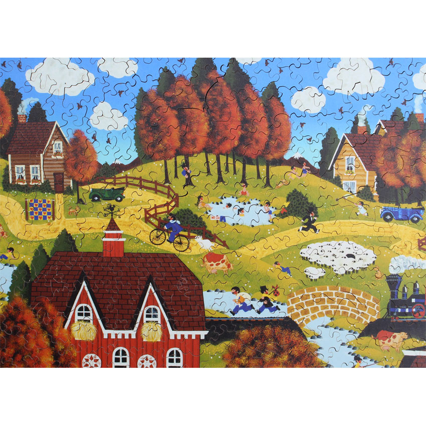 If you like Wysocki’s art in puzzles, then you are going to love working on this puzzle too. Bright colors, very fun details throughout the image and a nice cut. A real joy to work on and a great addition for any ELMS fan!