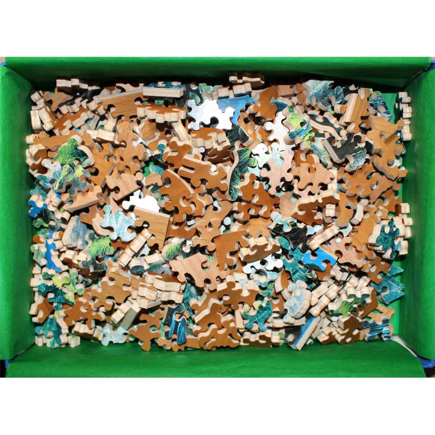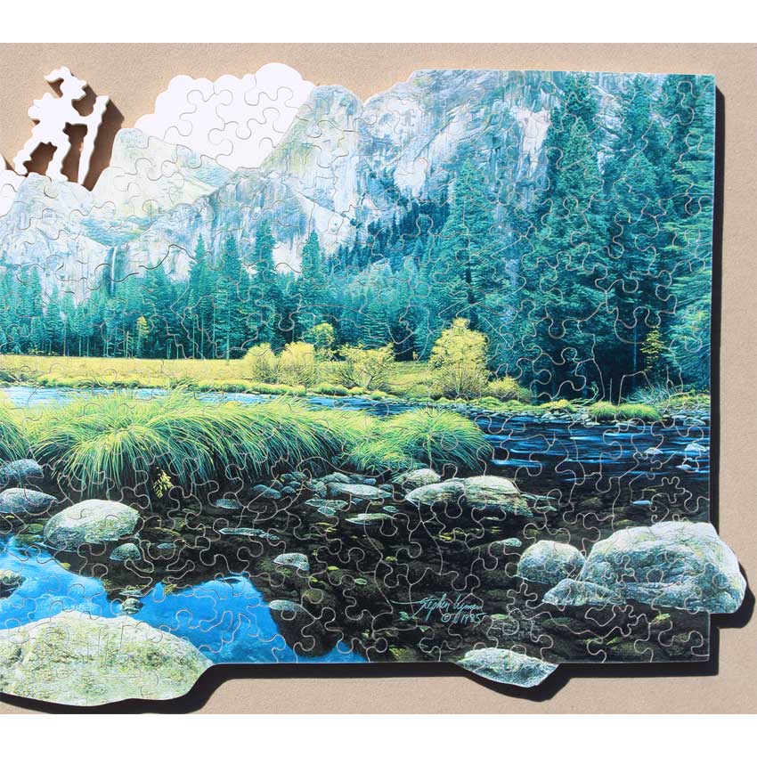 An amazing image of Yosemite by well known artist Stephen Lyman who tragically died while hiking in Yosemite in his late 30s. Stave did a fantastic job cutting this puzzle, including the hiker in the top edge, and made a fairly challenging puzzle for its size.