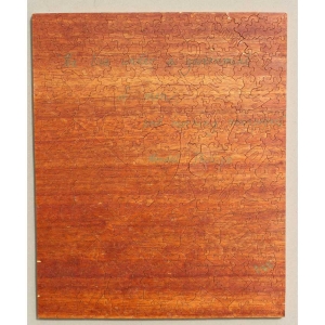 In good condition for age; a little uplifting on some pieces (see pics). There are various shades of the background color which you can see in the pics. Appears to maybe due to aging, however, it actually made it more interesting as it feels like an old newspaper. 1 of the 2 pieces of tissue paper is missing and writing on inside of lid with past “assemblers”. Few very small chips on back. 3 personal pieces (3 x names).