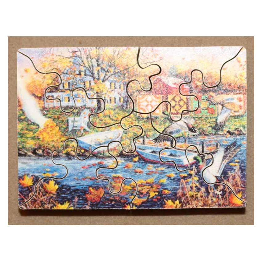 A gorgeous fall themed puzzle. Loads of interesting details fill the image. The true wood cutting artistry is reflected in the edge design. The way the leaves interlock with each other is second to none. A great puzzle to add to your collection. Includes a mini-version of the puzzle.
