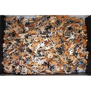 Bright colors and an unusual puzzle image (at least from our experience) makes for quite an ELMS to cherish as part of your collection. The juxtaposition of the bright colors from the bird and other elements in the image were a nice contrast around the more subdued brown background. Note: We counted the puzzles a couple times and the count listed on the label is about 60 lower than the actual number of pieces.