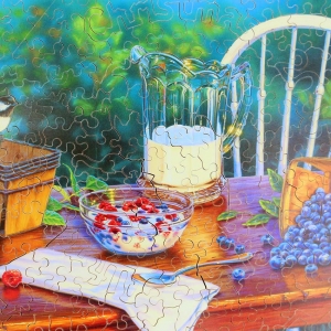 A nice still life that will remind you of those warm summer days that are fading into fall for many these days. A nice corner edge design and some cute silhouette pieces round out this colorful image.