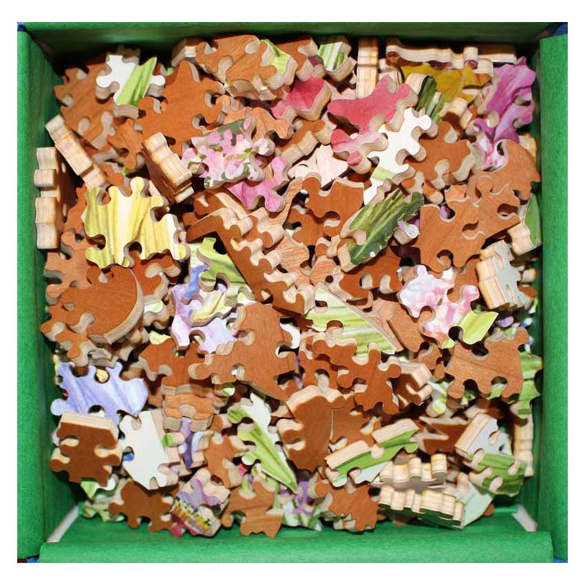 Floral puzzles with an irregular edge in the shape of the flowers are always a popular puzzle choice. This particular one is quite fun given the color variety and some interesting cuts. Bonus: Comes with a tiny version of the puzzle too!