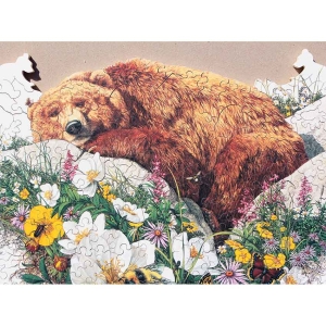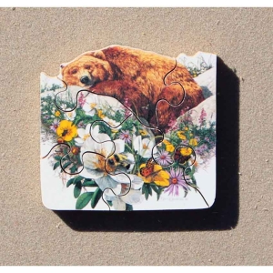Looks like spring is in the air and someone is slowly waking up from that long winter snooze. A nice irregular edge marked by 2 neat bear silhouettes and some bright colors make for a great Stave. Bonus: Includes mini-puzzle.