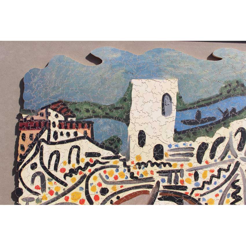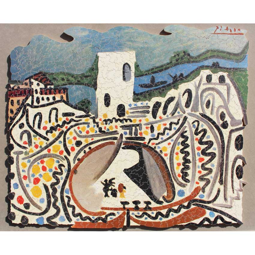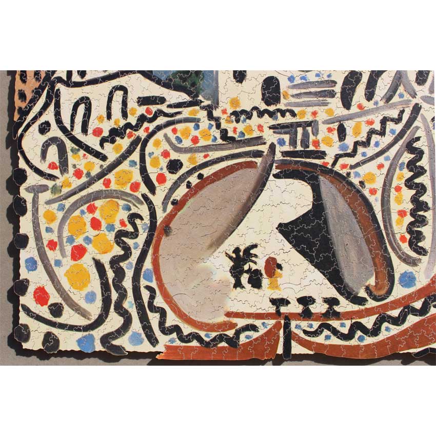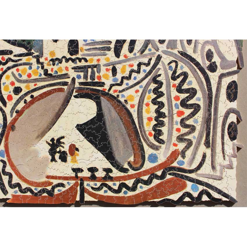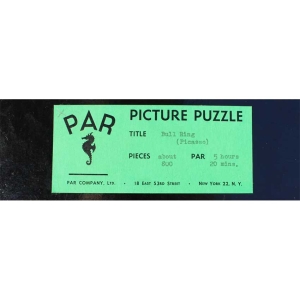 If you haven’t tried a Par with a Picasso image, here is your chance. You get your money’s worth with this one, it is tough but quite enjoyable. It does make you think about strategy as you have to rely on the image as much as the shape of the pieces to solve this one. Great colors, fun irregular edge, in amazing condition and even has the gold signature pieces that you don’t see on all Pars!