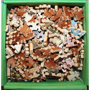 This puzzles is connected with 2 big names that you often see related to Stave. First, this originally came from the well known Lilly collection. (If you aren’t familiar with the collection the original purchaser of the puzzle was an early customer of Stave and ordered a lot of puzzles.) This is coupled with a gorgeous image by Wysocki, one of the most popular “puzzle artists” we sell. Bright colors, a great image and fantastic cuts, what more could you ask for?