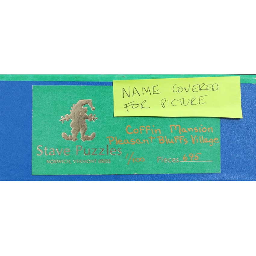 This was one of the first LE sets Stave put out, and here is a rare opportunity to purchase a #1! Each puzzle contains a different location in the fictional town of Pleasant Bluffs, MA. This puzzle is the Coffin Mansion. We guess you can come up with your backstory of who Lacey was and what the mansion is all about as you work on this puzzle! We believe it’s hand painted as we think most early LEs were.