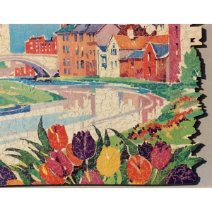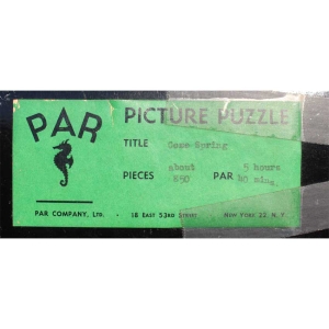 We were not able to find the source of this image, but believe it to be a travel poster, possibly of the Netherlands given the tulips. In any case, it’s a fantastic Par. The colors are bright and cheerful, has an irregular edge that is a little unusual in the way it was cut and, of course, those great Par silhouettes and the cutting style you expect to keep you puzzling late into many nights!