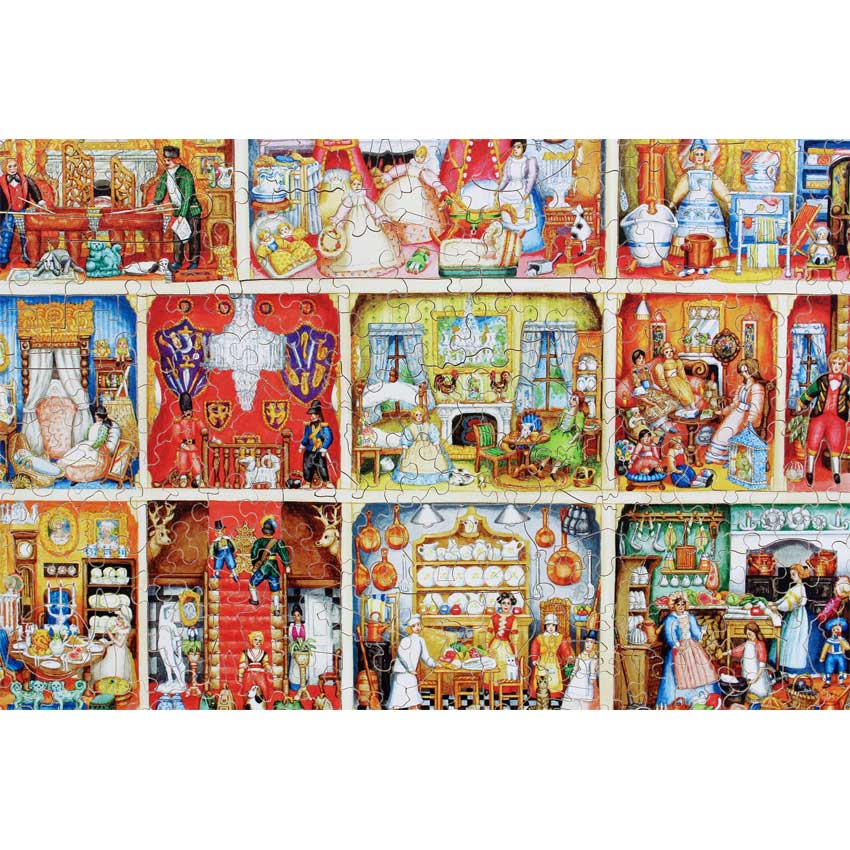 Despite how it looks, this is not a 3D puzzle! However, the combination of the cut and the image really create the illusion of doors, which is a real treat with this puzzle. You’ll love the Victorian era detail throughout this painting.