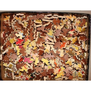 This is in pretty good shape, but does have some issues. There is 1 replacement piece that is ok – color does not match, but cut sort of works (see pic). There are some knobs that have wear and a few discolored pieces (see pic) that is not uncommon for Pars of this age. (If you would like to get it replaced, we can refer you to someone who is a master at this!)