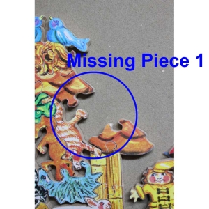 Missing 3 pcs (see pics) – it does not really impact solving the Teaser part of the puzzle, it almost makes the puzzle a little harder! Otherwise in excellent condition. Tissue paper replaced.
