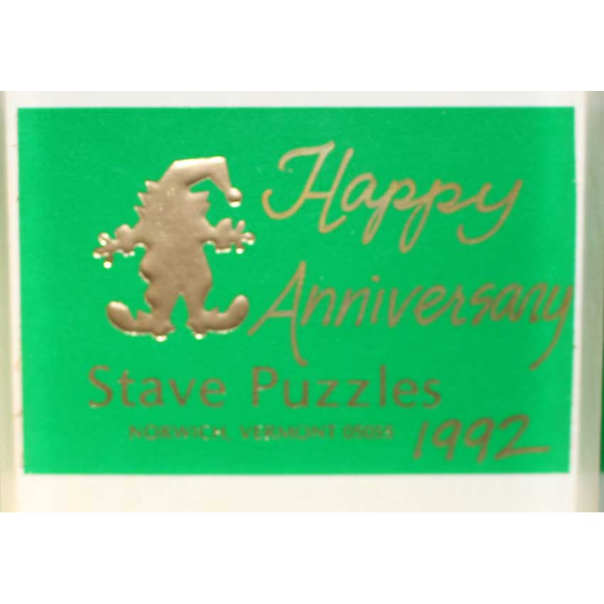 This anniversary themed puzzle appears to be retired from Stave. Some nice colors and we love all the words in the balloons.