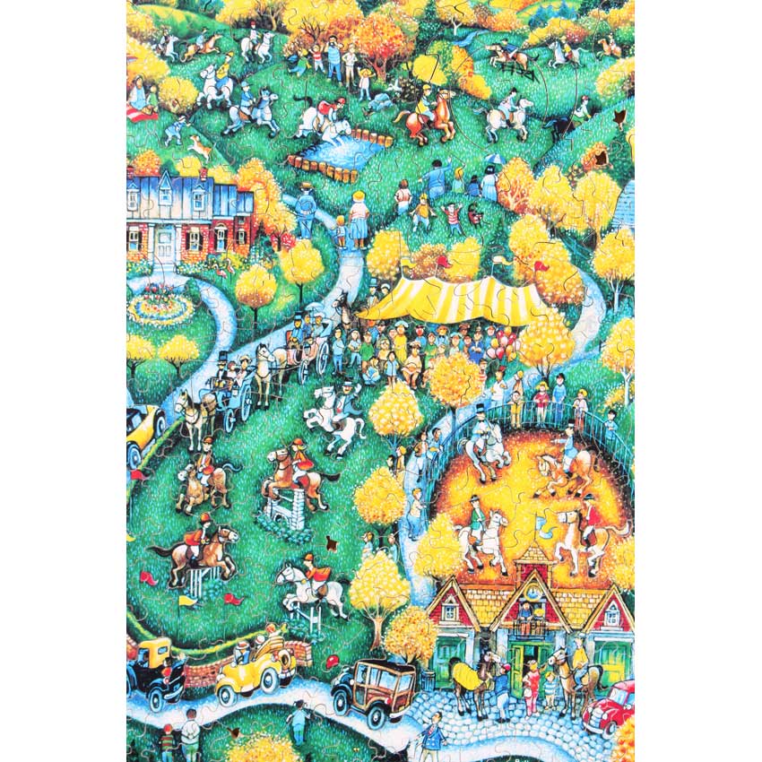 The first thing that catches your eye is the fantastic edge design – the horseshoes are such a cool touch. Beyond the edge, how can you go wrong with popular artist Bell Bell? This puzzle is no exception with some great silhouettes pieces not to mention the amount of action going on, truly one not to miss.