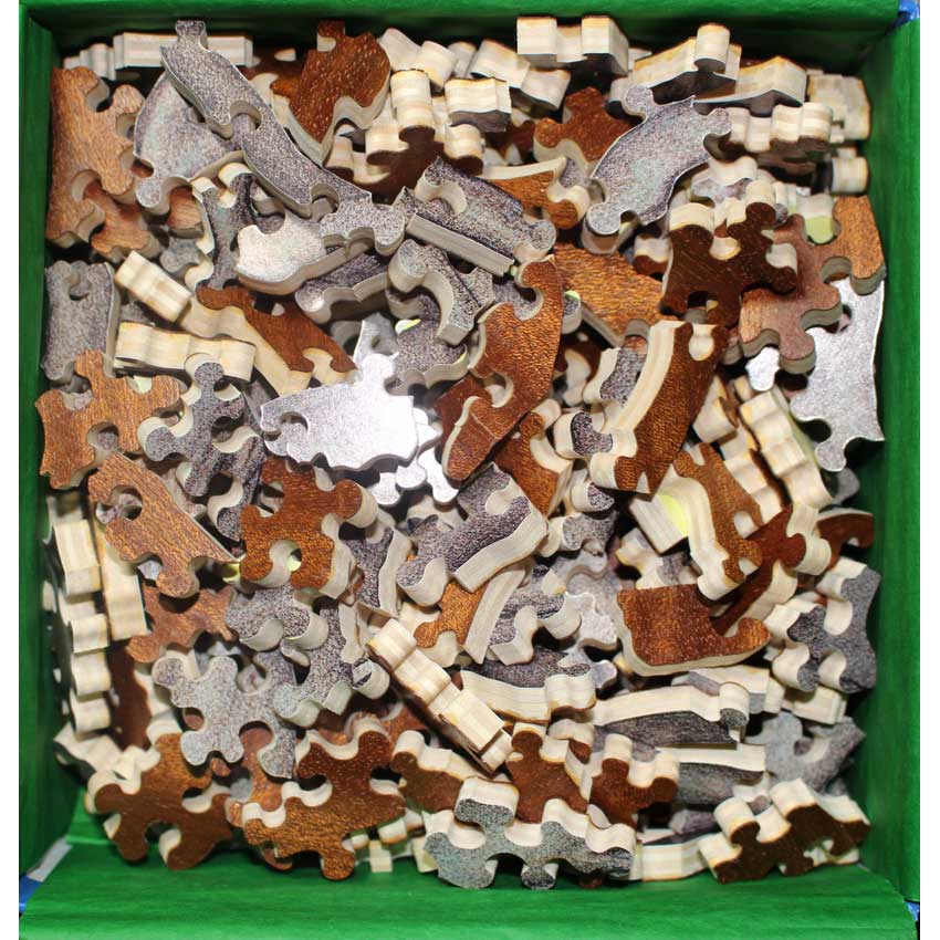 This is a pretty hard puzzle for only about 240 pieces. We actually think this may be more like a Tormentor in the design and cut,with loads of dropouts, similar to See the Rain, Dear and other puzzles in that style.. It’s a fabulous puzzle and you’ll have your work cut out for you solving it!
