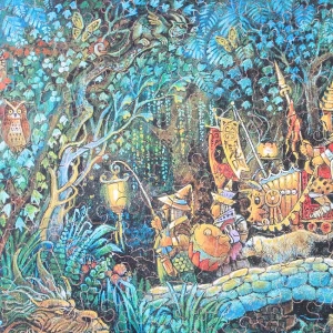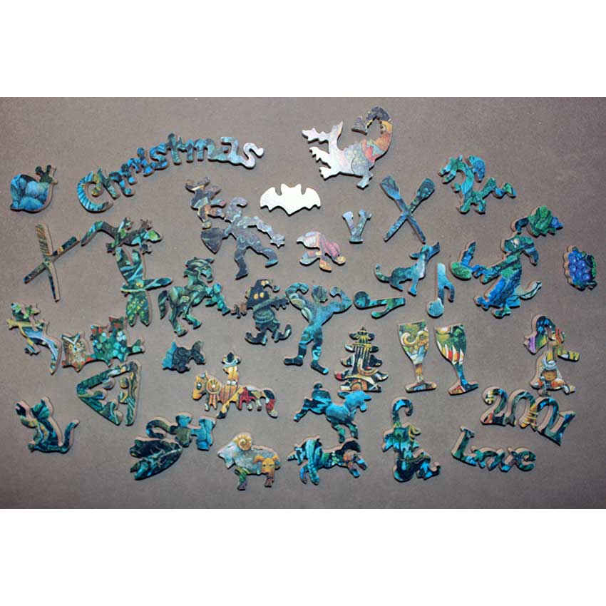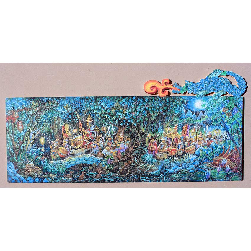 An incredibly wide puzzle, Bill Bell created a real masterpiece. The details of all the characters really shine. But what really takes the cake is the amazing dragon edge design, the fire is a great touch for an amazing Stave.
