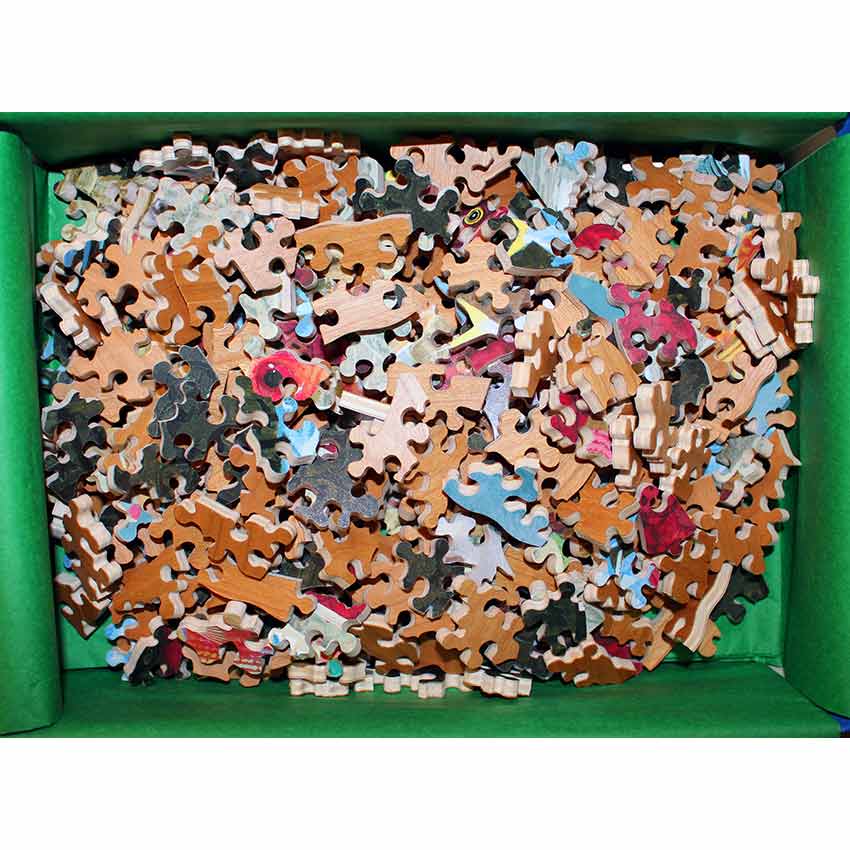 A classic Christensen image – an unusual character in a semi-portrait look accompanied by fish. A pretty tough backdrop and a nice scalloped edge all come together for this delightful puzzle.
