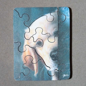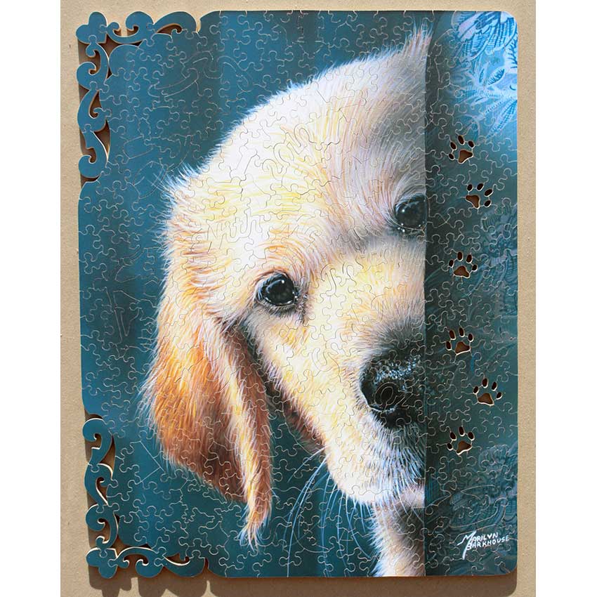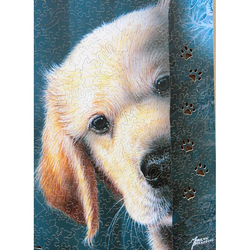 This has a very cool feature if you look close – par prints running up the side of the puzzle as dropouts. We can’t recall seeing this design before in a Stave, so a unique opportunity to pick up a nice cut with an adorable dog to boot! Bonus: Includes mini puzzle
