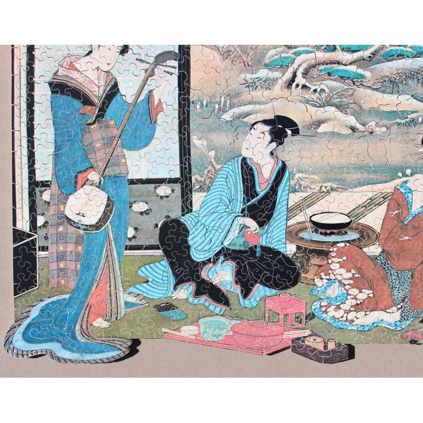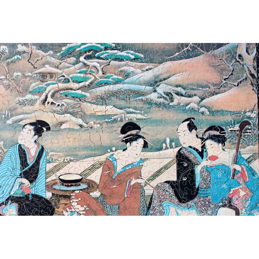 This extraordinary painting is entitled “A Winter Party”. It makes for a wonderful puzzle. It’s one of these that it’s just hard enough that you are quite challenged, but so hard to the point of frustration, just pure fun puzzling. Some nice line cuts, creative silhouettes and a great irregular edge truly make this a special Stave!