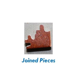 Good condition. The label has writing on it (see pic). There are 2 pieces that are glued together (see pic). There are 2 more that also appear to be glued to each other, but don’t see any noticeable damage on any of them. They are fairly small and was not very noticeable. No personal pieces.