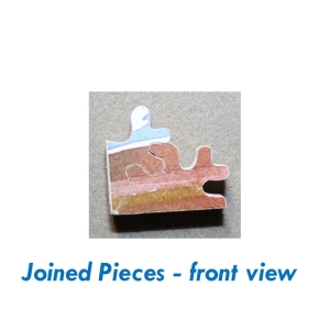 A delightful and colorful still life of a kitchen counter. Very bright and interesting silhouettes make this a fun puzzle. Interestingly the pieces seem to be a bit smaller than most Traditionals, but not small enough we’d classify this as a cut that Stave called a mini in the past.