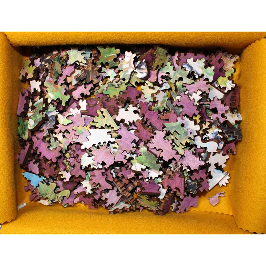 An interesting choice for a puzzle. The soft tones of the image make for a good challenge, combined with the nice silhouette designs. Comes packaged in an unusual puzzle box that is similar to a cigar box.