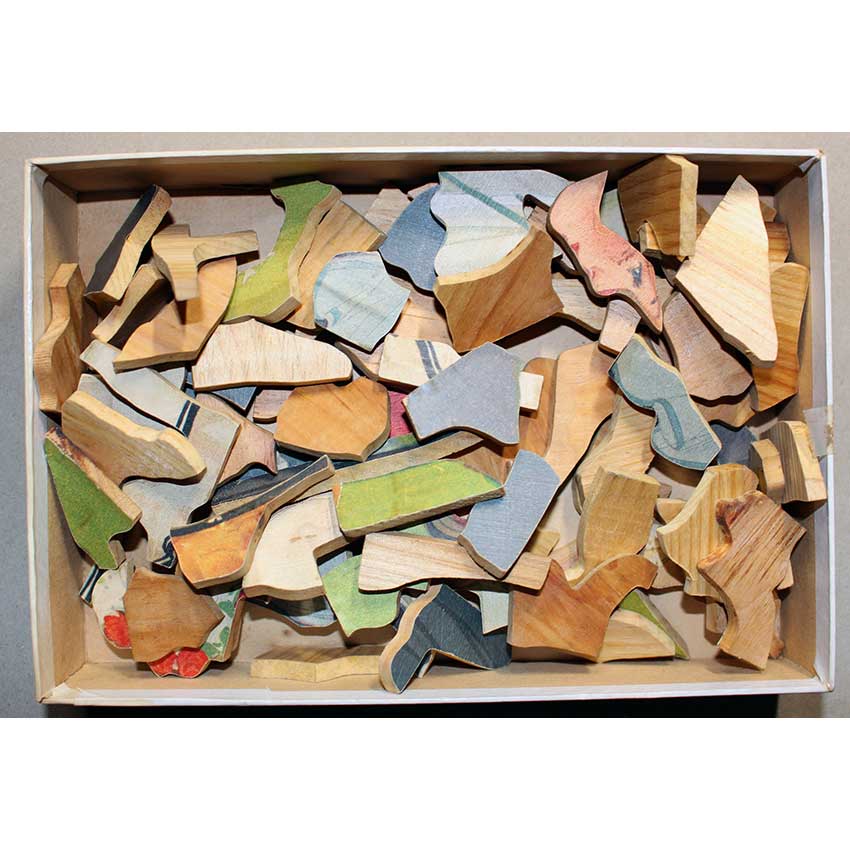 Our count matches once on box and says complete on the box. Push fit puzzle that seems like could be a very early puzzle. Can’t tell if box is original without peeling off labels that may damage it, but looks to be replaced.