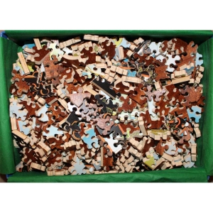 Very good condition, a few pieces where the paper layer is showing a little wear, fairly minor. 2 personal pieces (name, year). Note: The piece count on the box looks like it was transposed, we counted 558 pieces.