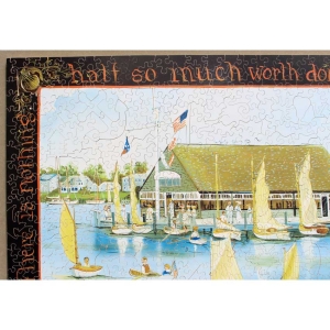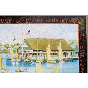 Another fantastic image by Mumford. Her paintings are known for their unique style with the solid black border and a quote or phrase filling the space. An extremely fun image to assemble, with a lot of nicely designed silhouettes. Just when you think you are done, you have that border to figure out!