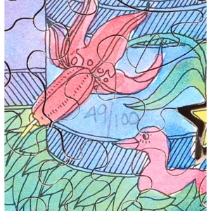 Here’s your chance to own a popular Stave Limited Edition. This is the crème de la crème when it comes to puzzles. This puzzle has lots of hidden treats, including it being a double decker puzzle with loads of negative space and an irregular edge! A truly amazing hand-painted puzzle you will sure to treasure as part of your collection. This is an earlier copy of this LE which includes the original flyer for the puzzle when it was selling for $2,195, the current price on Stave’s site is now $6,195!