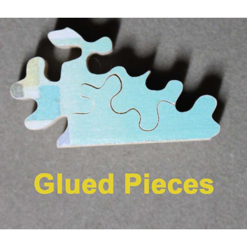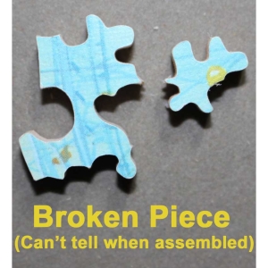 Excellent to very good condition overall. There are 2 pieces that were glued together at some point, no idea why they both seem in good shape. 1 piece broke at a very fine part. It basically makes it 2 pieces, as you can’t tell when the puzzle is complete. (If you’d like to have it replaced, we can give you a referral to someone who can help.). Box a little scuffed.