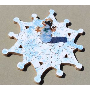 ~39 Total Pieces ~5 1/2″ diameter Date Unknown Here’s a fun winter themed treat of a puzzle with a nice 3D element to boot. Platinum is owned by Dee Rogers. Her name may sound familiar as she worked for Stave many years ago and designed a number of puzzles before starting her own company. A … Continued