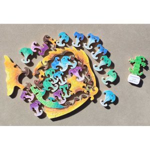 ~50 Total pcs ~6″ x 5″ (tallest/widest points) 1 Sword 2010 (Solution not shown.) A classic timeless teaser. We have had several of these over the years and always enjoy the bright colors and shapes. The design of the way the fish fit together is extraordinary. Excellent condition. No personal pieces.