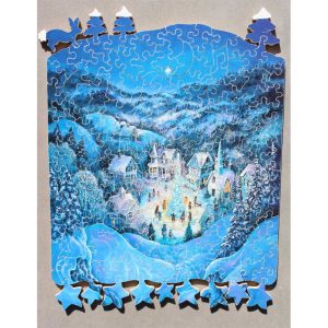 ~89 Total Pieces ~11 Silhouettes ~7 1/4″ x 5 3/4″ 2006 A gorgeous image for a cold winter day of puzzling. This Stave has some nice corners, not as common to see on smaller puzzles in our experience and some fun silhouettes to complete the winter theme. Excellent condition. No personal pieces.