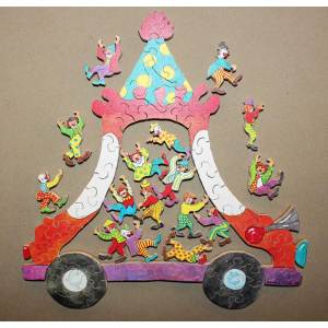 ~68 Total Pieces 3 Bolts ~9” x 9” 1992 (Solution not shown.) Designed by none other than Andrea Farnham, this is a very special copy as it is an early version and cut by Andrea as well. As a puzzle, this is a really interesting Trick. In fact, the Teaser section (the clowns in the … Continued