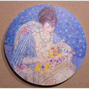 ~29 Total Pieces 2004 A very nice circular cut. We couldn’t find the painter of this, but is a nice colorful image. This puzzle is in excellent condition. Box has a couple of minor creases in lid from coming. Comes in plain white box.