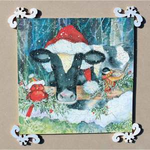 ~256 Total pcs ~25 Silhouettes ~10 3/4β x 10 3/4β 2011 This has to be one of the cutest Christmas puzzles ever. Who can resist that cow with a Santa hat on? A few fun interacting silhouettes complement the nice corners. A classic! Excellent condition. No personal pieces.