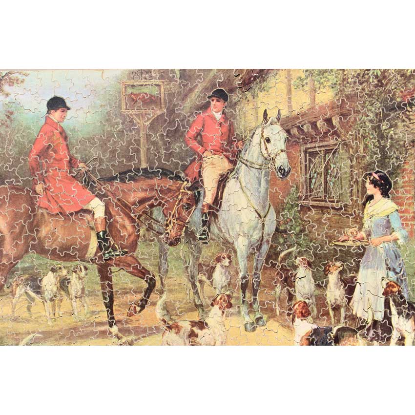 This is an early Par. A very classic looking hunting painting, we were unable to find the original source, but a little different twist than the normal painting in this style that usually is set in the forest.