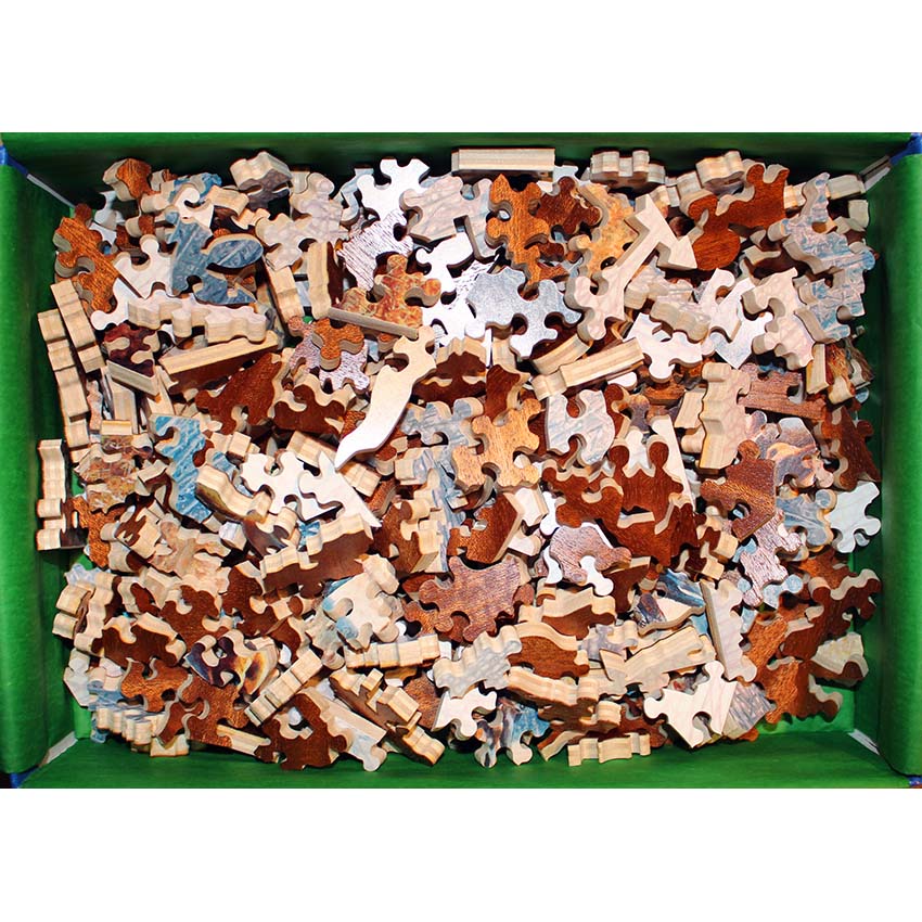 The title really brings a bit of humor to the image. It completely changes the feel of what’s going on and should bring a smile to your face too. The trees were an interesting bit to solve, lots of shades and little hints to follow to get it together. Also the positioning of the silhouettes was a little unusual too, you’ll find out what we mean when you get it going on our puzzle table!