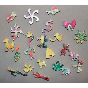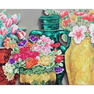You can’t help but notice the amazing cutting on this irregular edged Stave with a couple of nice dropouts. The flower pots feel like they are popping out of your puzzle table as you work on this brightly colored puzzle. A real treat.