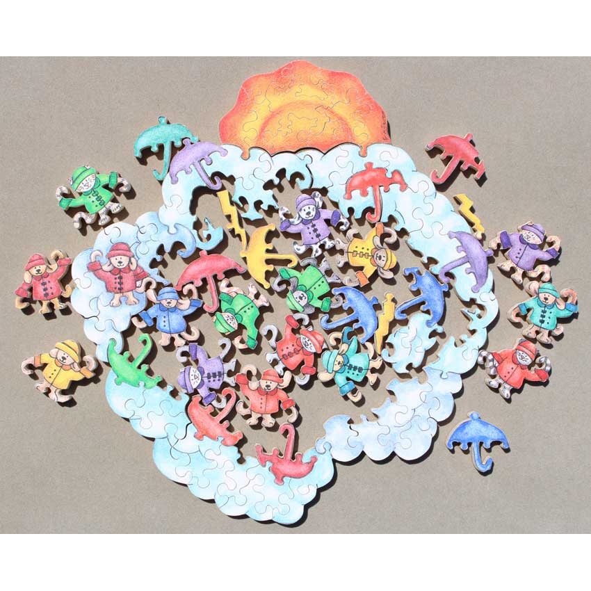 Don’t let the innocent looking cats, dogs and umbrellas make you think this puzzle will be like a “walk in the rain” (if that was a real expression!). A truly delightful puzzle with some wonderfully colorful pieces.