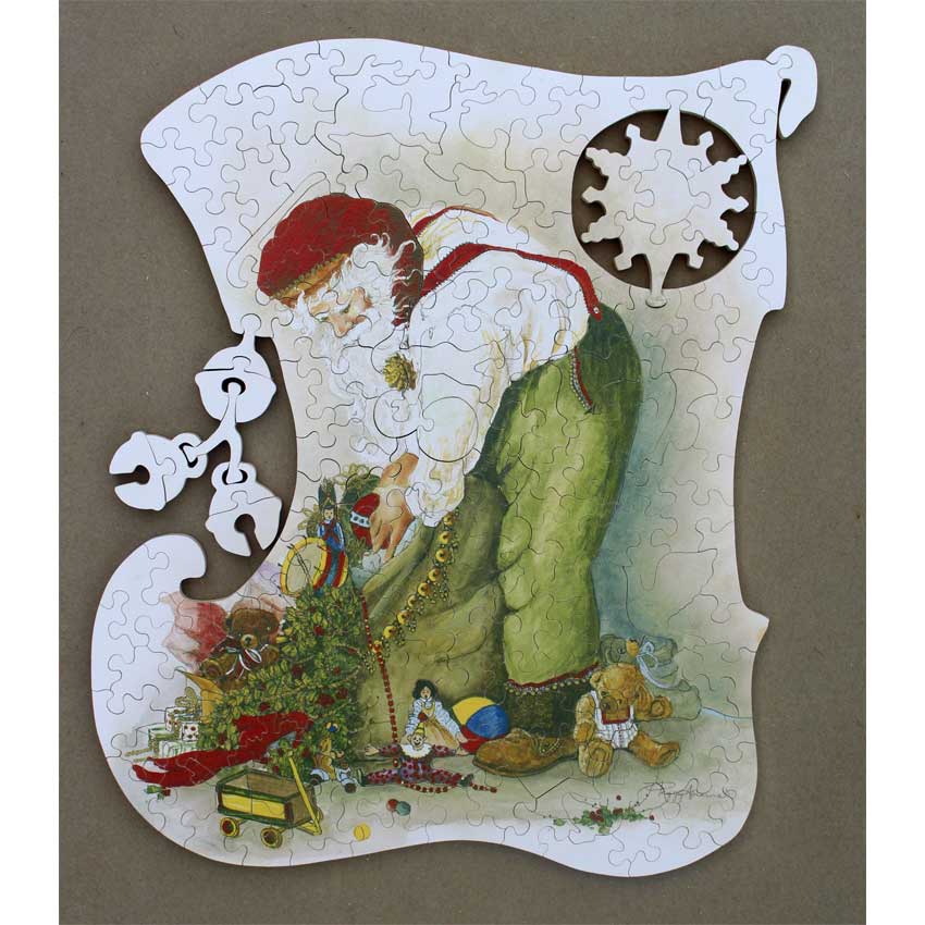 A fantastic dropout design and irregular boot shaped edge make this Christmas Stave an instant classic. The bells really complete this puzzle!