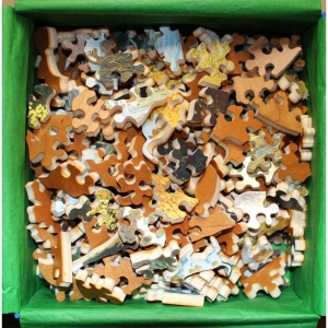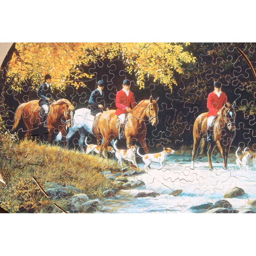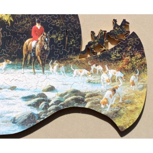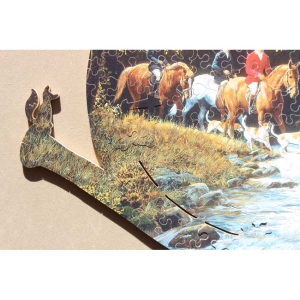 So we have to admit, we aren’t quite sure why this puzzle is the shape of a snail given the image and theme, but it does make for an amazing irregular edge, especially with the horses riding along the tail. Whatever the reason, this is a pretty unusual cut and a nice image for a cool autumn evening spent at your puzzle table!