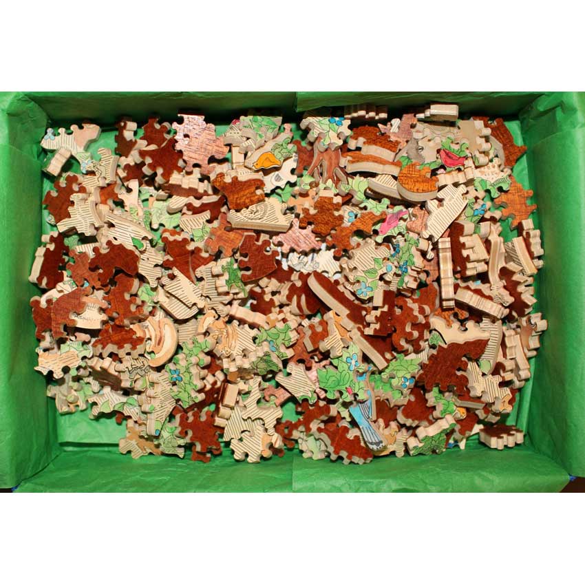 Excellent condition. 3 personal pieces (initials, 2 x word split into 2 pieces). The number 3 on puzzle and label.