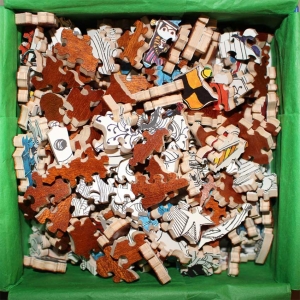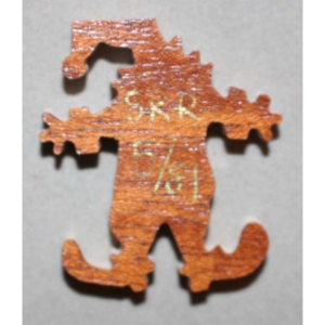 A very interesting early Stave of an amazing and unusual image. The combination of the black and white and colored sections, along with the irregular edge, make for quite a good challenge. Add in the irregular edges and some other nice features and you have a great Stave for your collection. Cut by SKR and looks like the artist may have signed too.