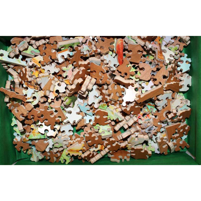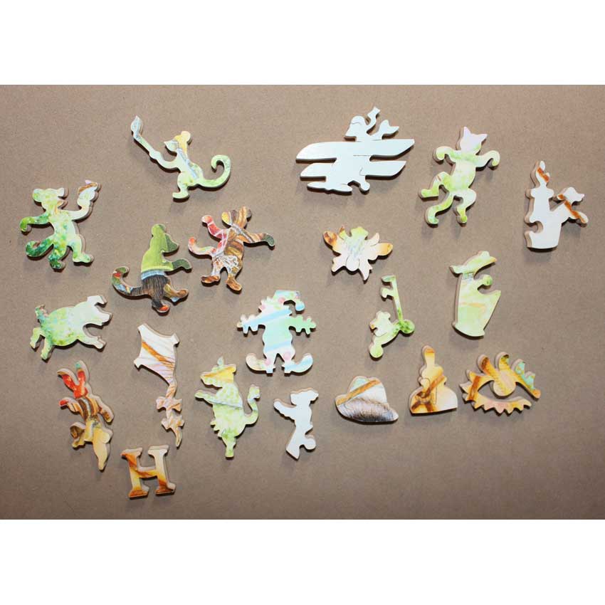 Here is a very rare cut given it’s an octagon. In fact, we can’t recall if we’ve ever had an octagon shaped Stave before. It was an interesting twist on assembling the puzzle as the unusual angles were throwing us off. A very cute set of animals in this image off on the adventure of a lifetime. A special Stave to add to your collection.