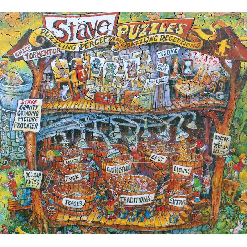 How’s this for a custom designed piece of art by Bill Bell just for Stave? There is so much packed into this amazing puzzle we aren’t going to begin to describe it, we’ll just say you won’t be disappointed between the artwork and the amazing cut!