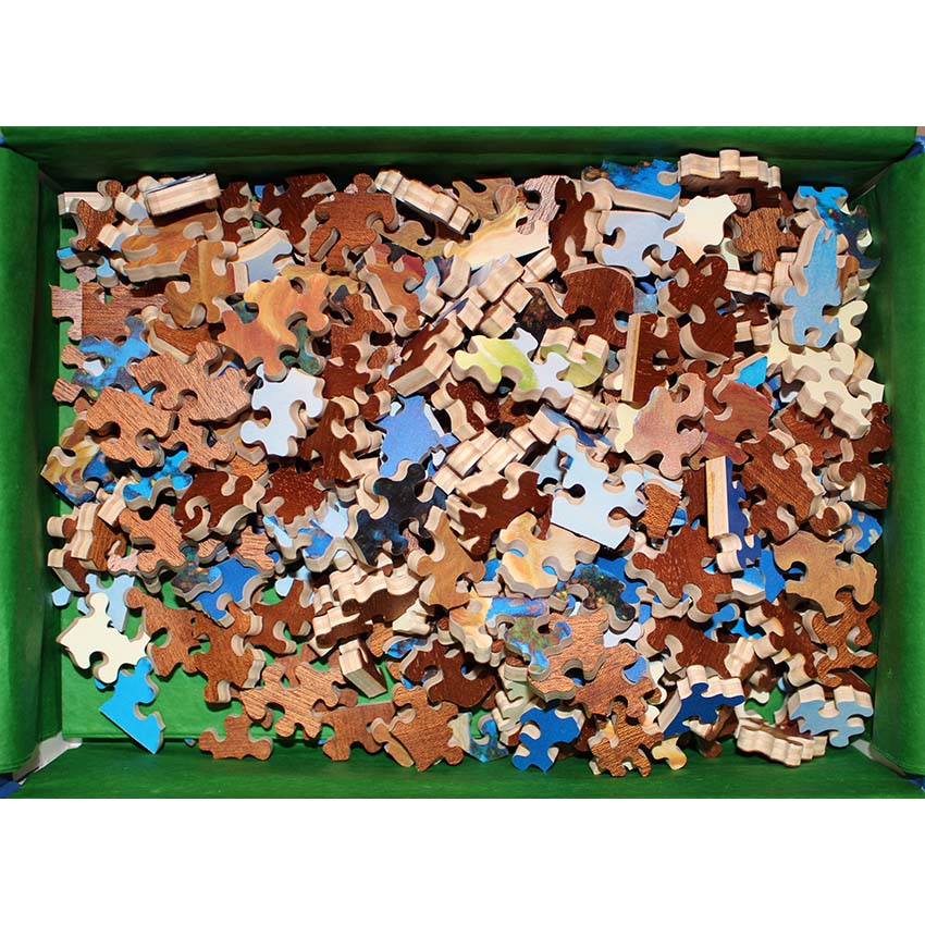 We’re not entirely show the meaning behind this piece, but it is a different take on an animal image. The words add a bit of a challenge as you work on solving this puzzle and it makes for an interesting puzzle experience.