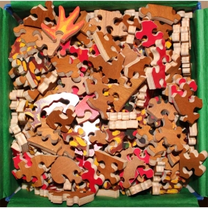 This is an extraordinary cut puzzle and exquisite design. A very special puzzle that will sure to keep you thinking for a bit, the red colored pieces were tricky. Very fun and quite unusual, a real treat of a Stave to add to any collection.