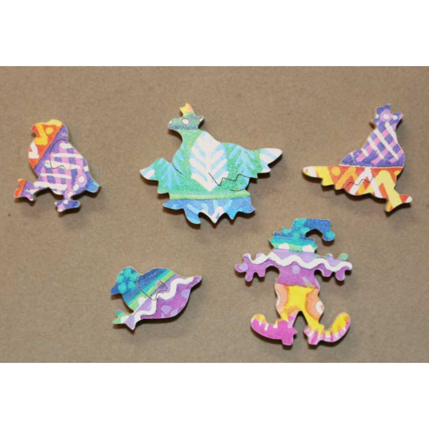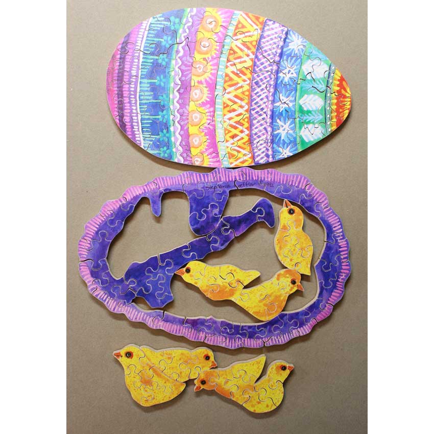 This is a bit of a 2 for 1 Trick. You have the egg cut in the traditional cutting style and then the tricky part getting all the birdies in the egg frame. Nice design with the 2 elements in one puzzle.
